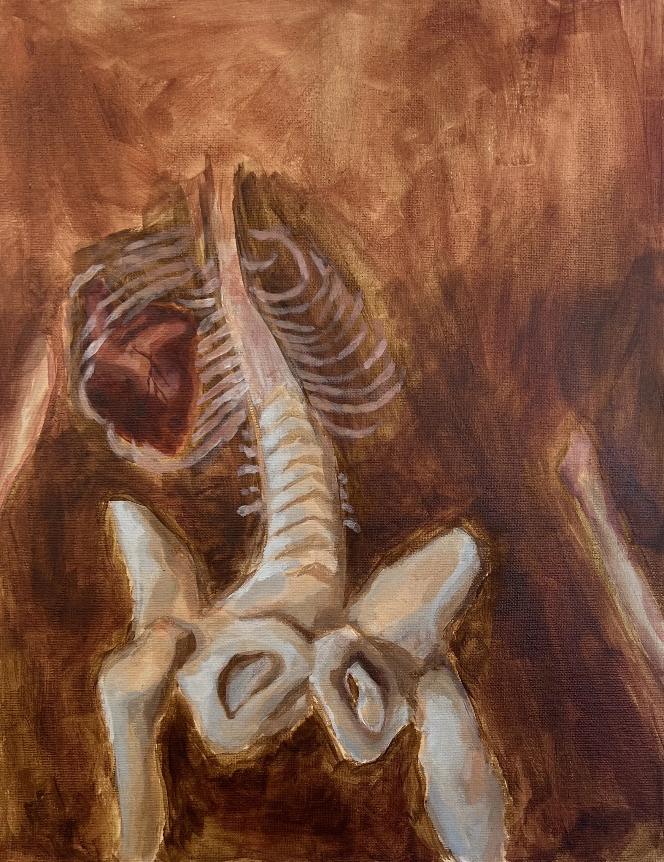For this piece, I wanted to incorporate anatomical figures related to my sustained investigation for AP 2D Art. I chose to experiment a bit with my perspective and opted for a more dull color scheme. By composing a heart with skeletal structures, I hope to visually depict emotional vulnerability and transparency.
