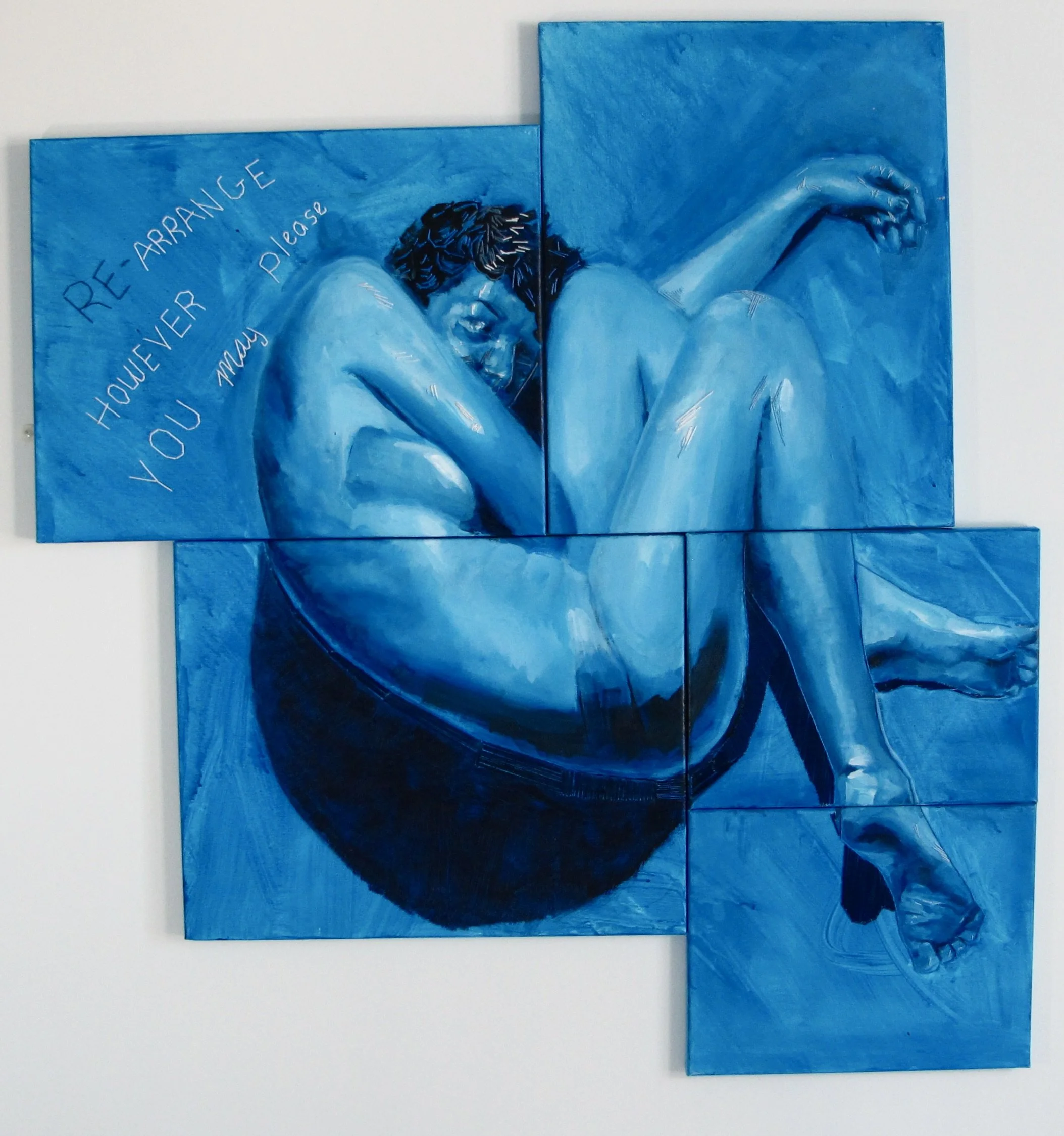 “(Re)Arrange However You May Please” is a piece regarding my own ownership of my body. Throughout my experience living as a transgender teenager, I have often felt controlled by various outside forces. I find there is always something to be said about my appearance, gender identity, sexuality, or validity. The title and quote can be seen as not only a direction to the audience, but also to myself as I grow older. I show my confrontation with bodily-autonomy as I move into adulthood.
