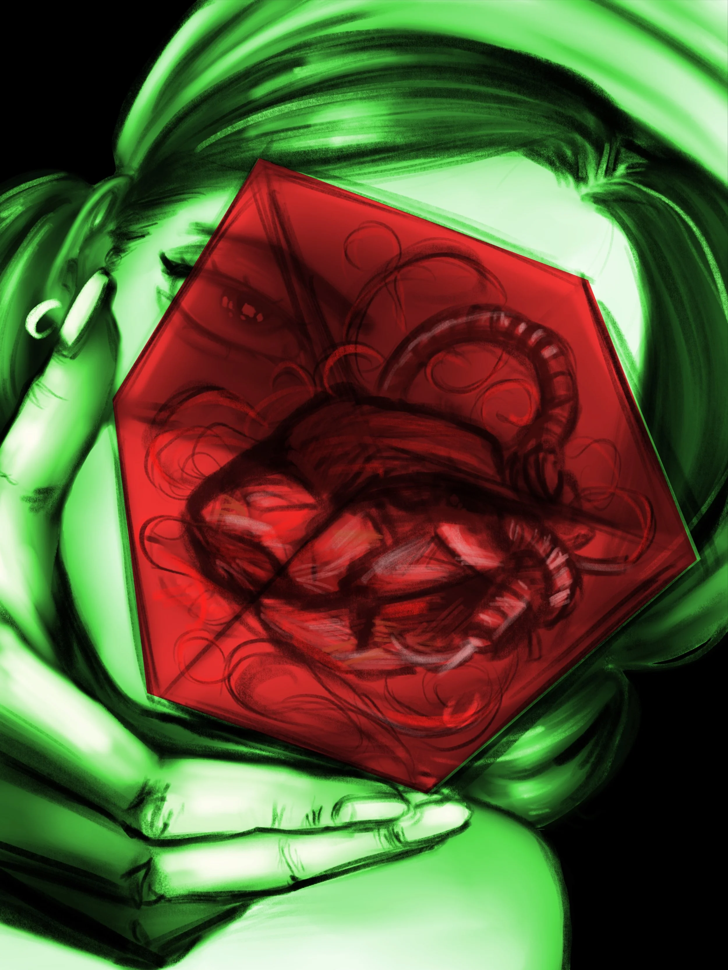 My inspiration for this piece comes from wanting to express the emotions of a vigilante. I was also inspired by the show "Arrow," and I wanted to show how vigilantes have codes, morals, and ethics, too. This womna is a fashionable killer and had been working with a man who she found was roofying girls. She discovered this and happily killed him for his sins. My inspiration for the title "Red Touches Yellow" is the saying "red touches yellow kills a fellow," which I feel represents this piece.